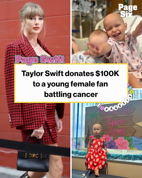 BREAKING NEWS:Taylor Swift generously donates $100,000 to 2-year-old girl suffering from brain cancer, fans follow footsteps