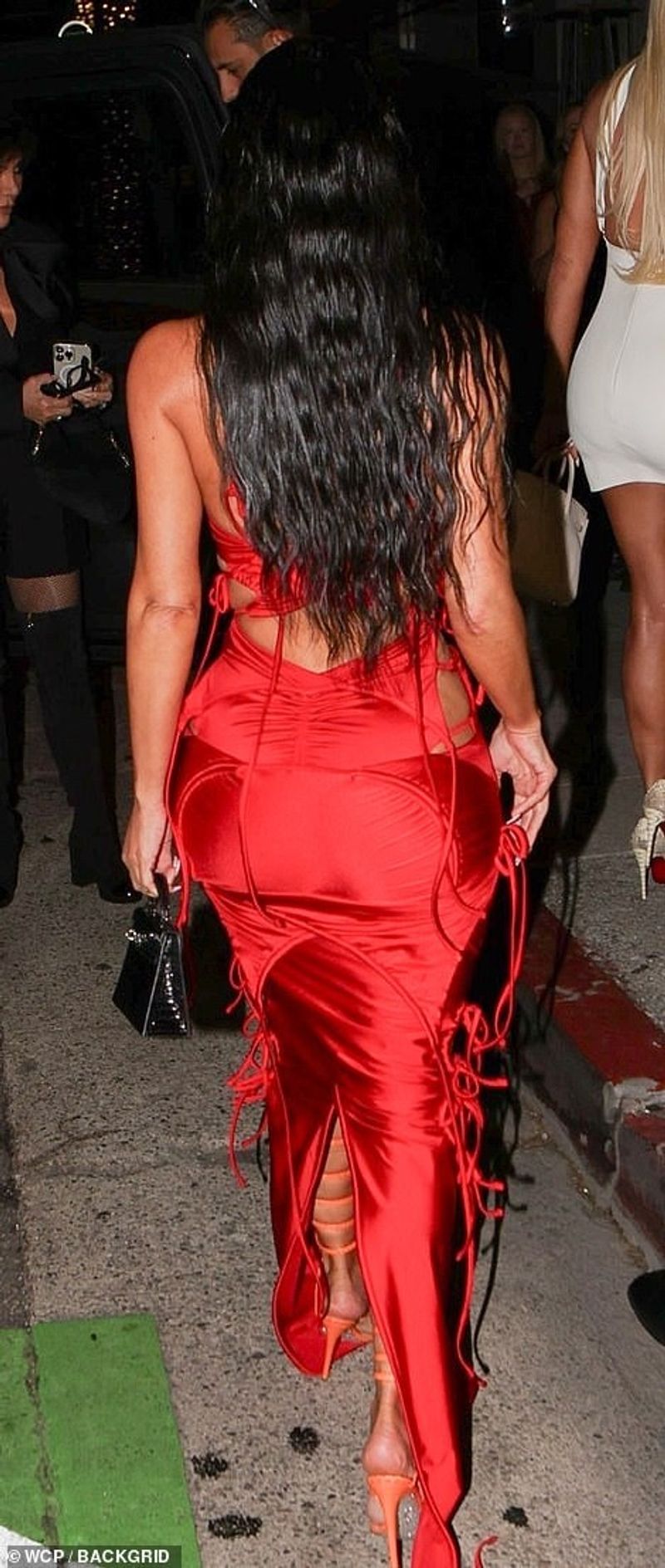 The SKIMS mogul, who officially celebrates her birthday on Saturday, arrived at the entrance of the gorgeous ‘Funke’ restaurant in a sexy red dress.